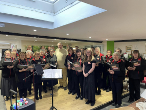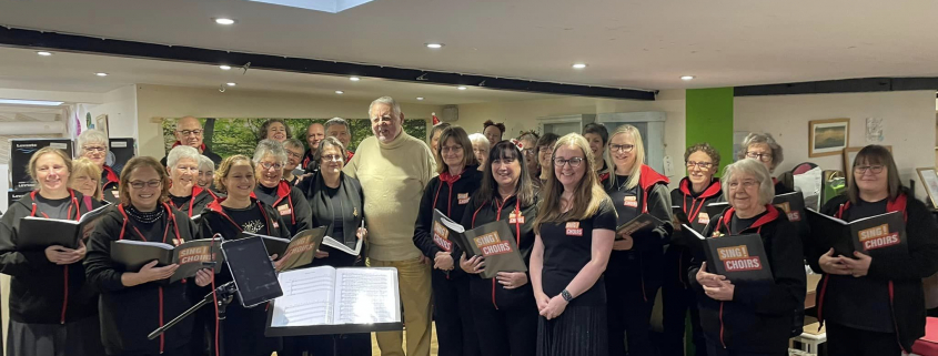Picture shown here of Sing! Choirs taken at Emmaus, memories of a lovely Christmas sing in the presence of Sir Terry Waite.